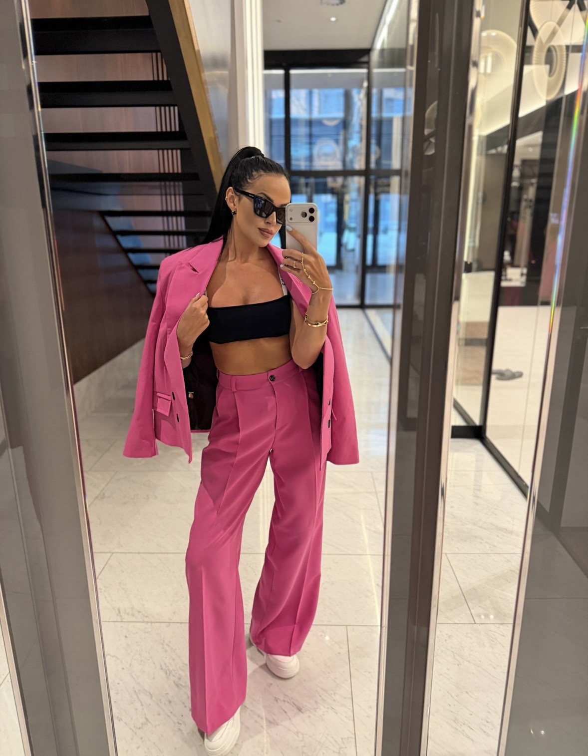 Marynarka doskonale sprawdzi się zarówno w komplecie ze spodniami garniturowymi, tworząc spójną i szykowną stylizację, jak i w zestawieniu z jeansami lub spódnicą – na co dzień i na specjalne okazje. Wysokiej jakości materiał zapewnia komfort noszenia oraz idealne układanie się na sylwetce.