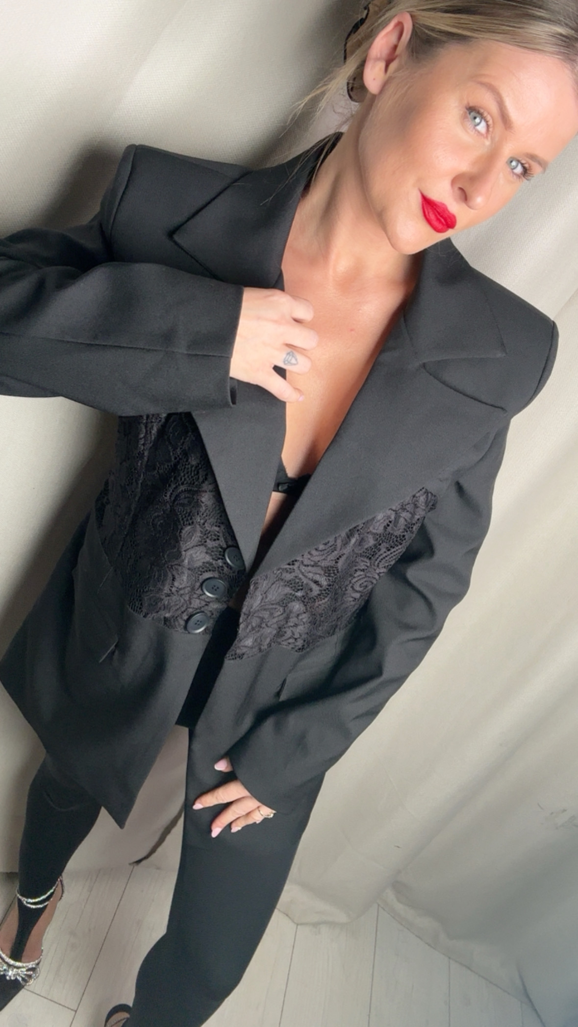 Marynarka ze zdobną koronką na przodzie La Milla – czarna