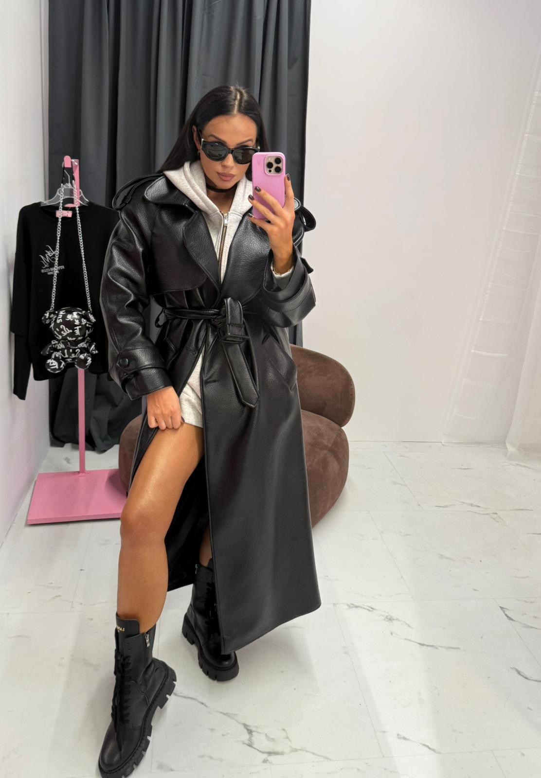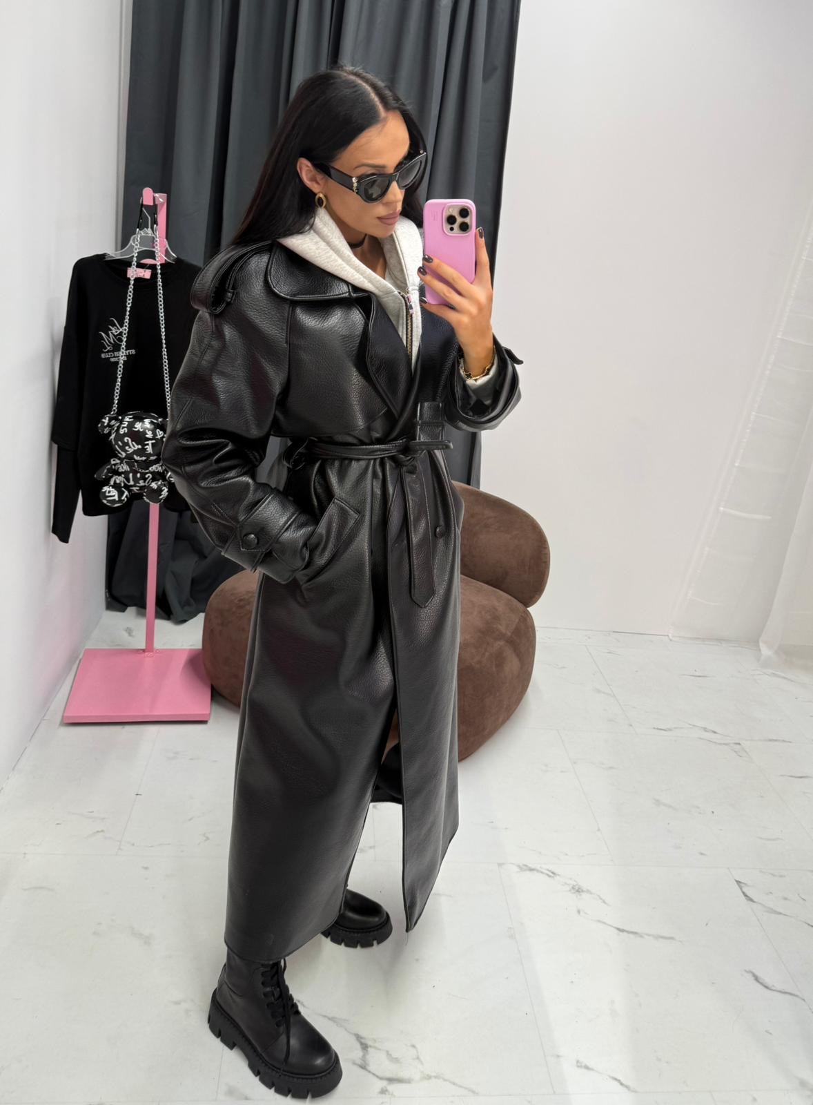 Płaszcz długi eko skóra z paskiem La Milla – czarny