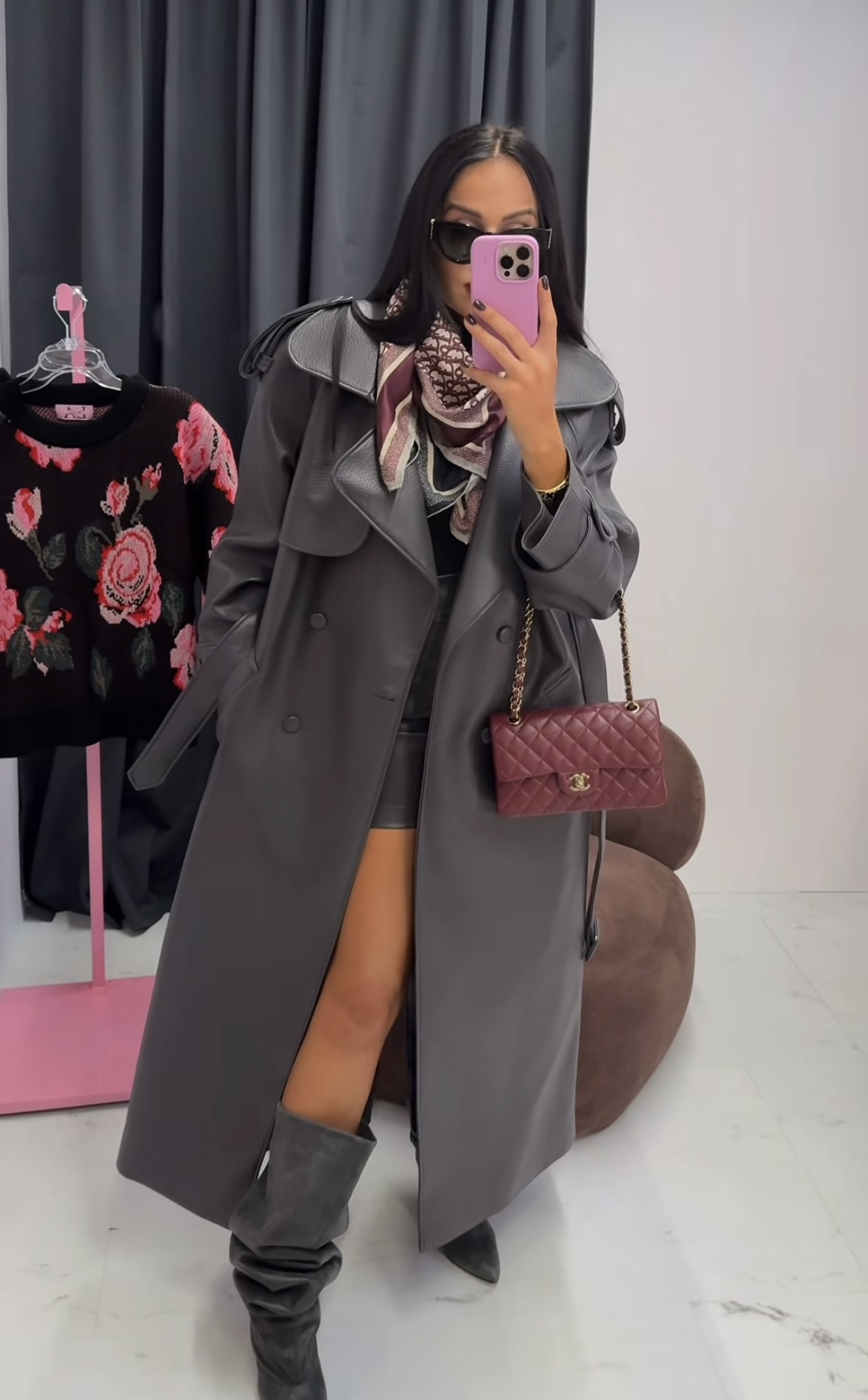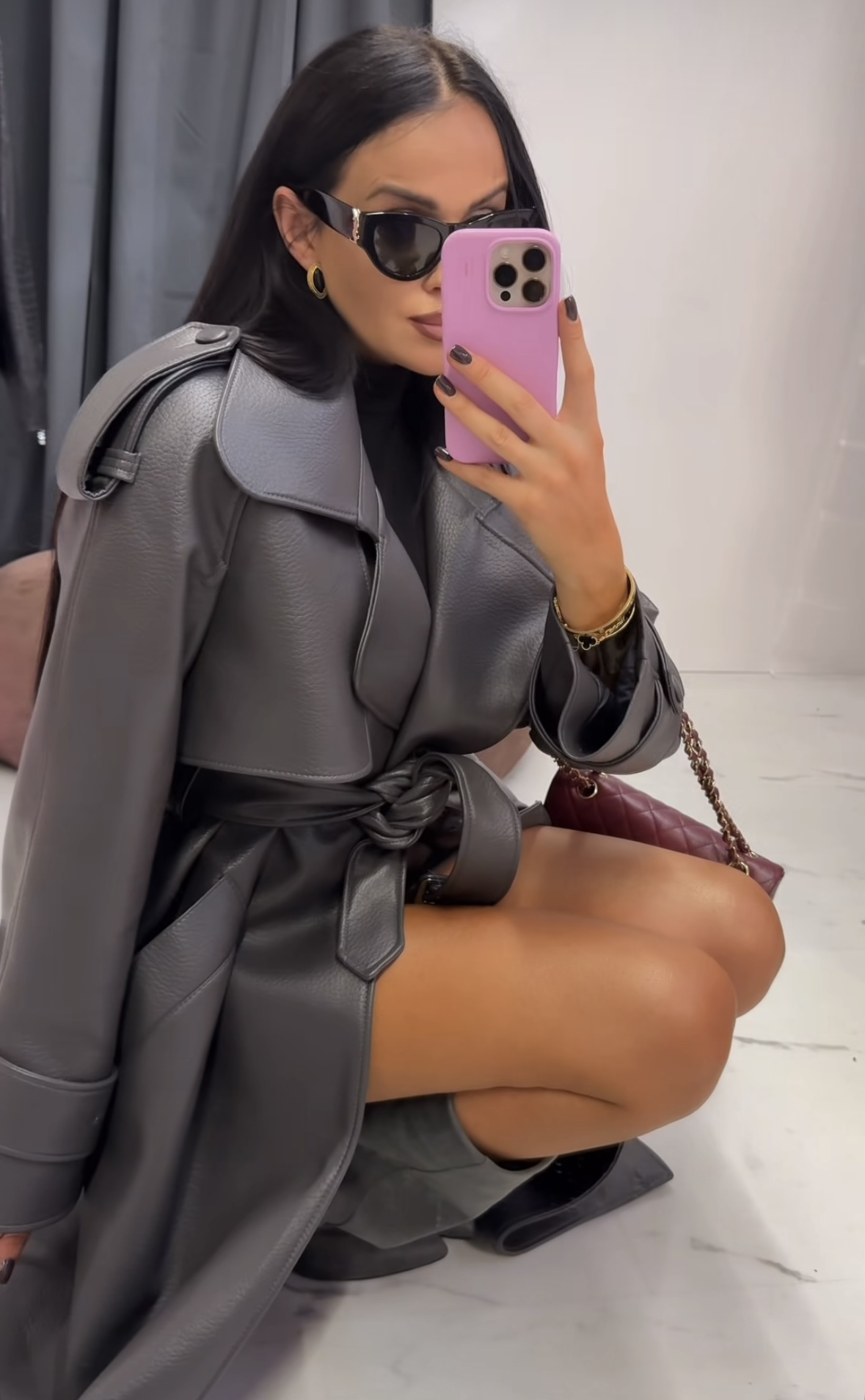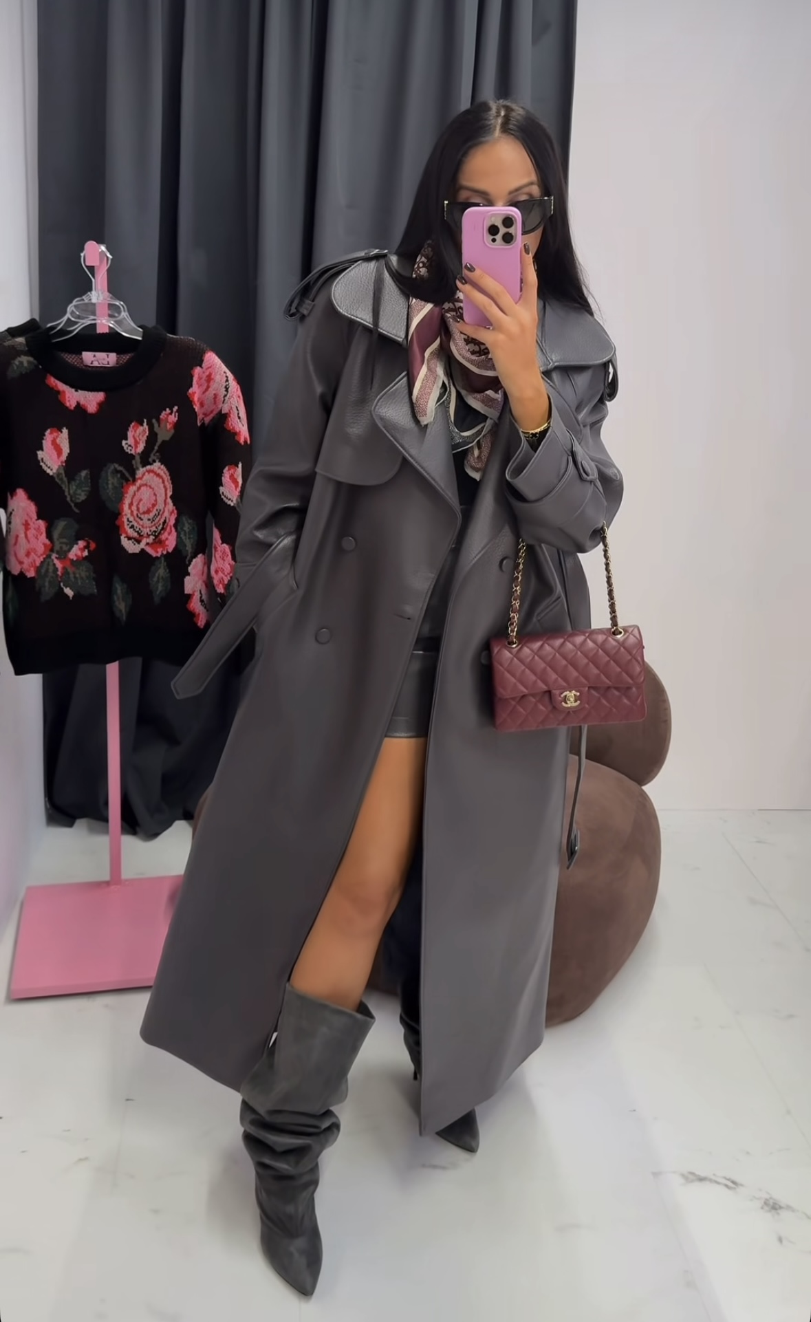 Płaszcz długi eko skóra z paskiem La Milla – grafitowy
