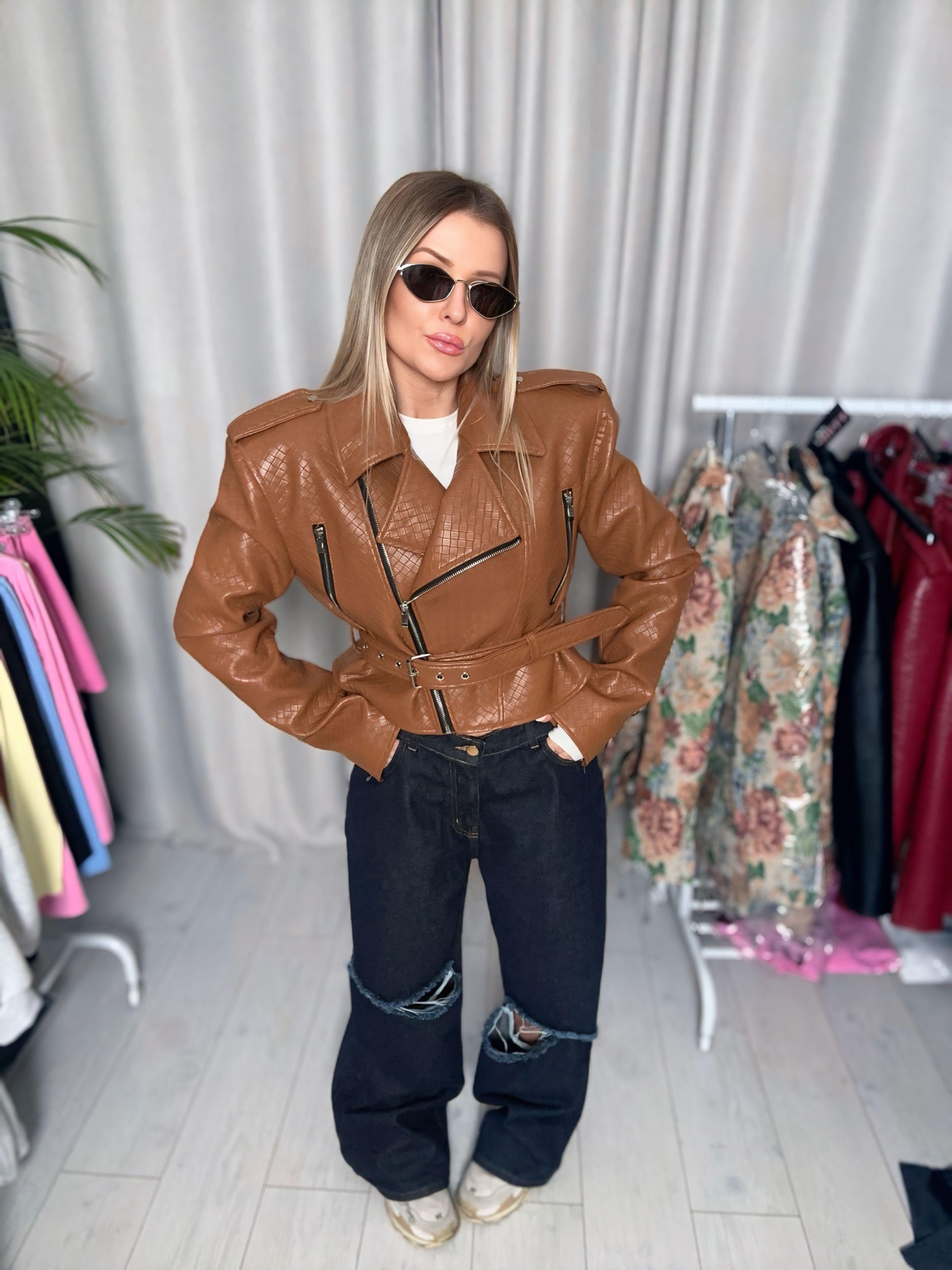 ramoneska La Milla z paskiem to mocna, wyrazista propozycja z nowej kolekcji skórzanej, stworzona z myślą o kobietach, które cenią nowoczesny design i luksusowe wykończenie. Model wyróżnia się klasycznym krojem ramoneski, wzbogaconym o efektowny pasek zapinany na dole, który pięknie podkreśla talię i nadaje sylwetce kobiecych proporcji.