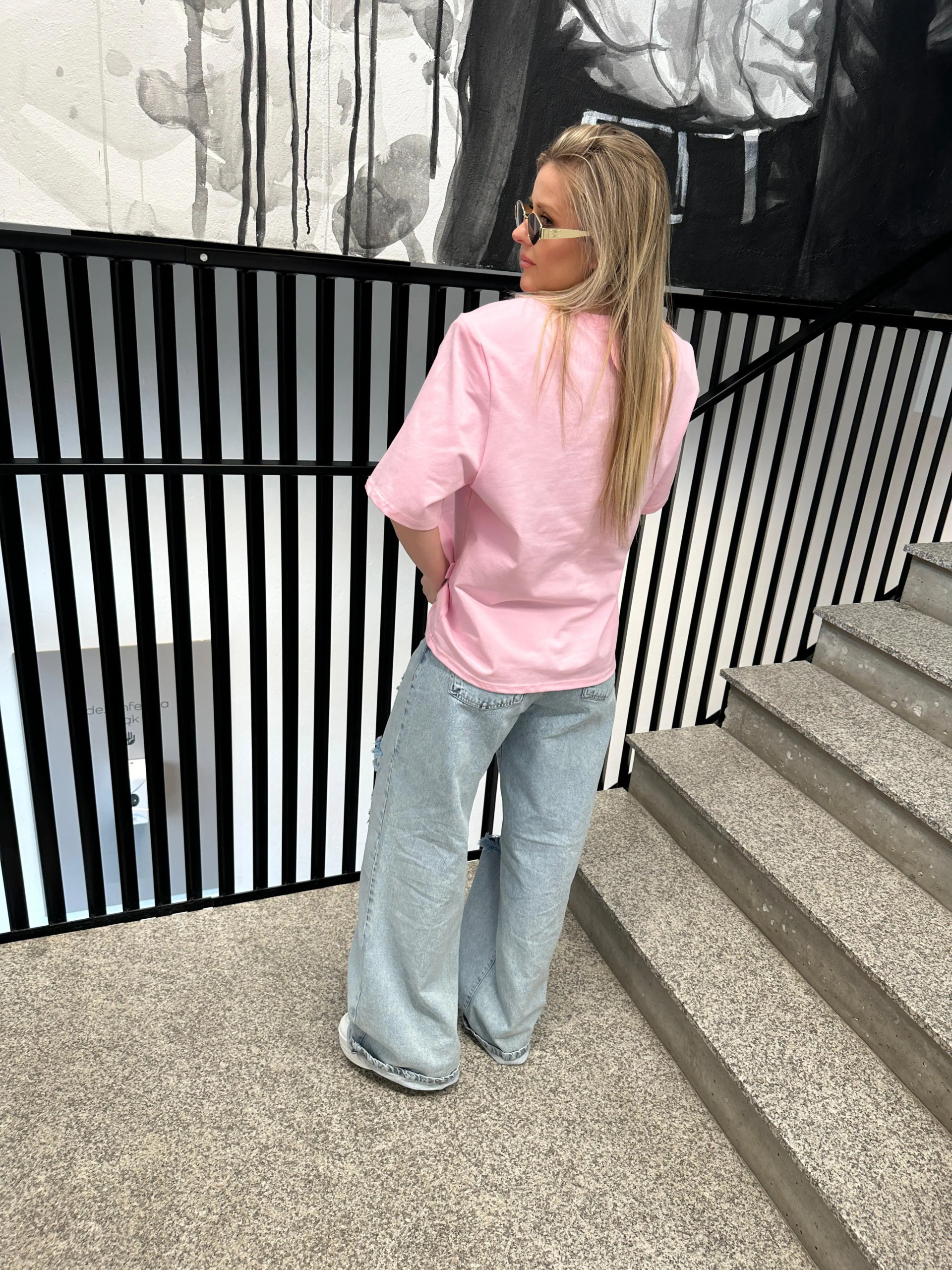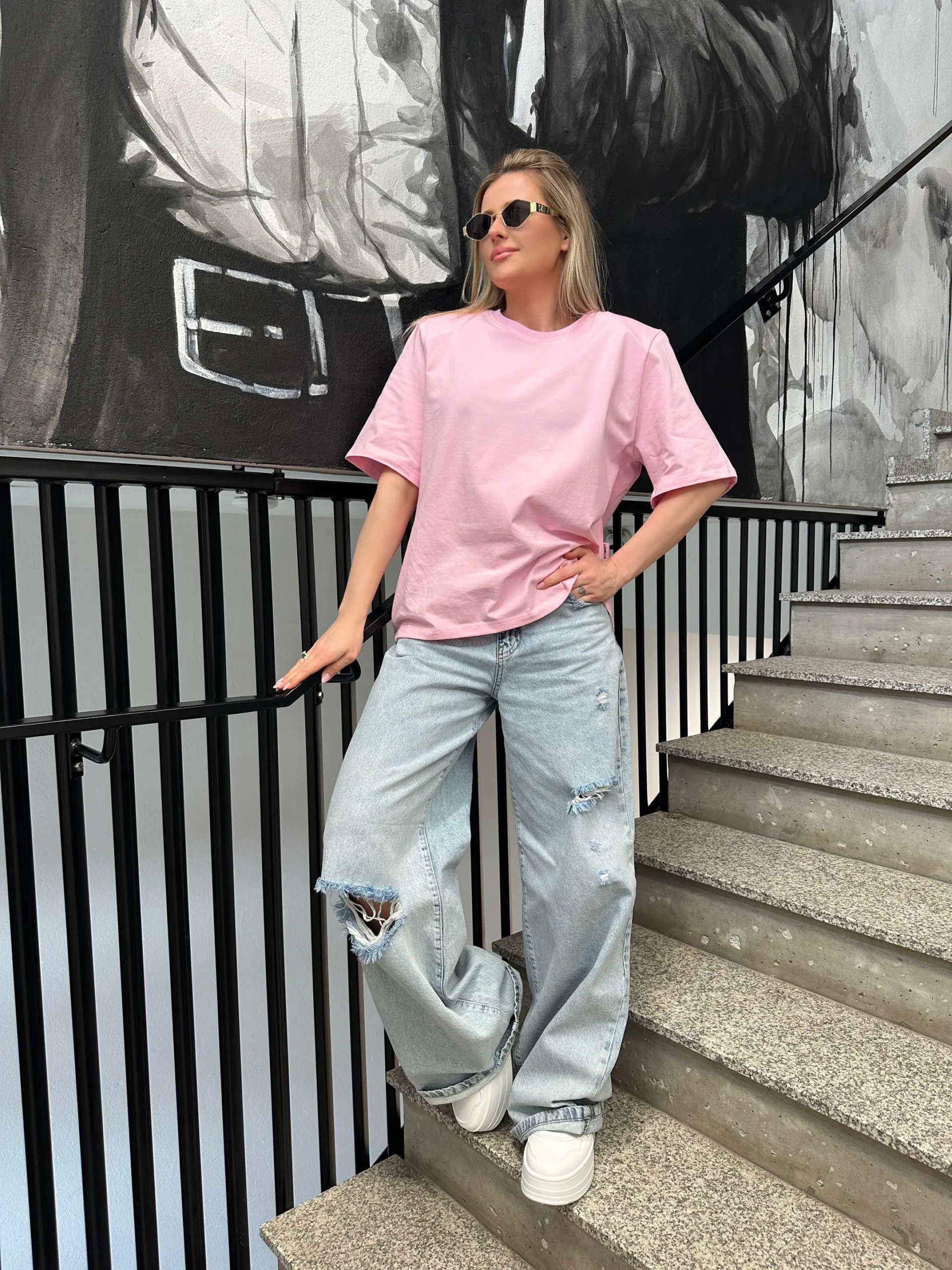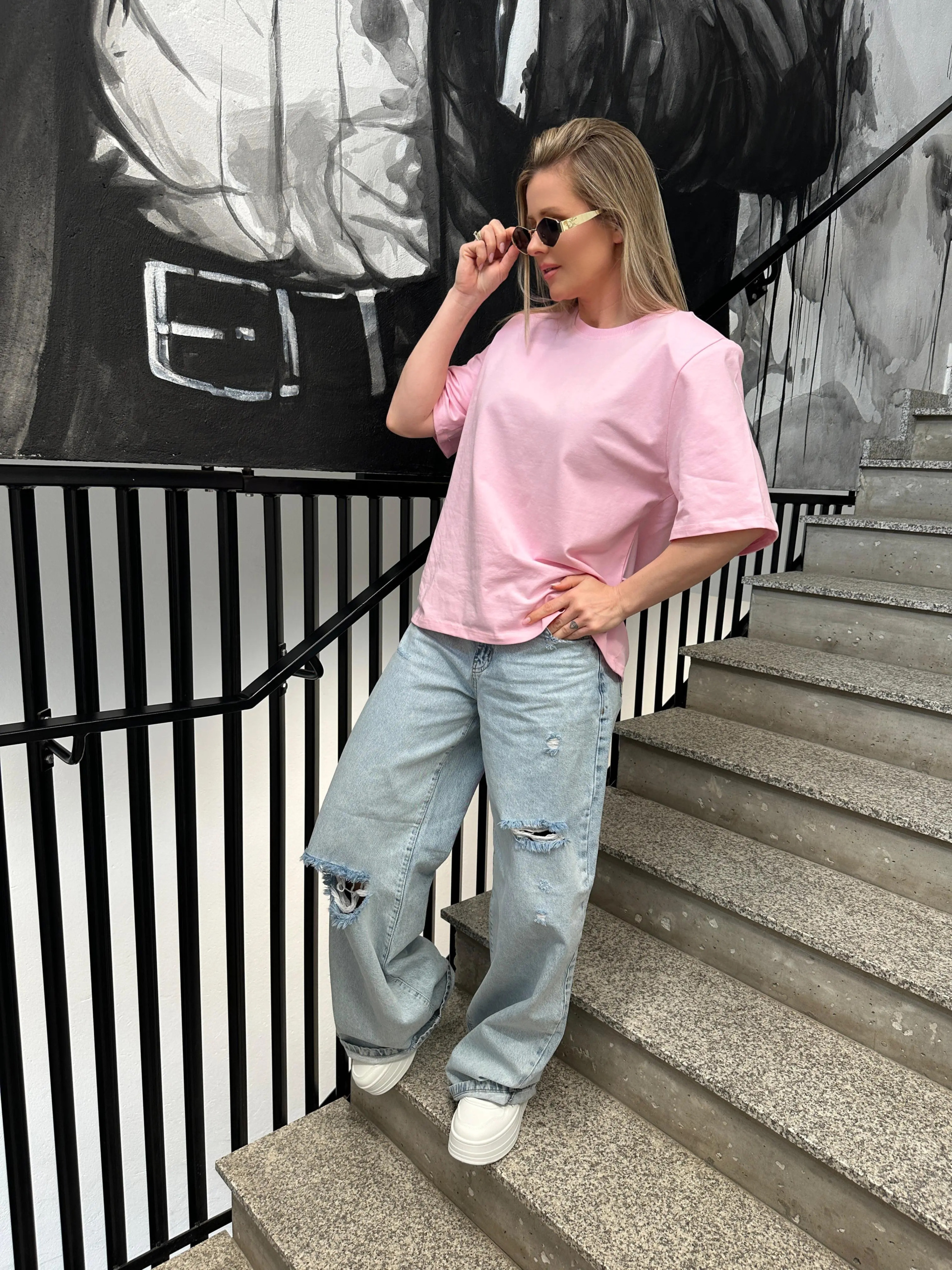 Strona główna Odzież damska Bluzki Różowy T-shirt damski z poduszkami na ramionach | La Milla | bawełniany Basic Premium