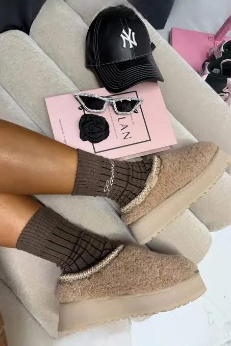 Skarpetki do UGG grubsze Logo białe La Milla – czekoladowe