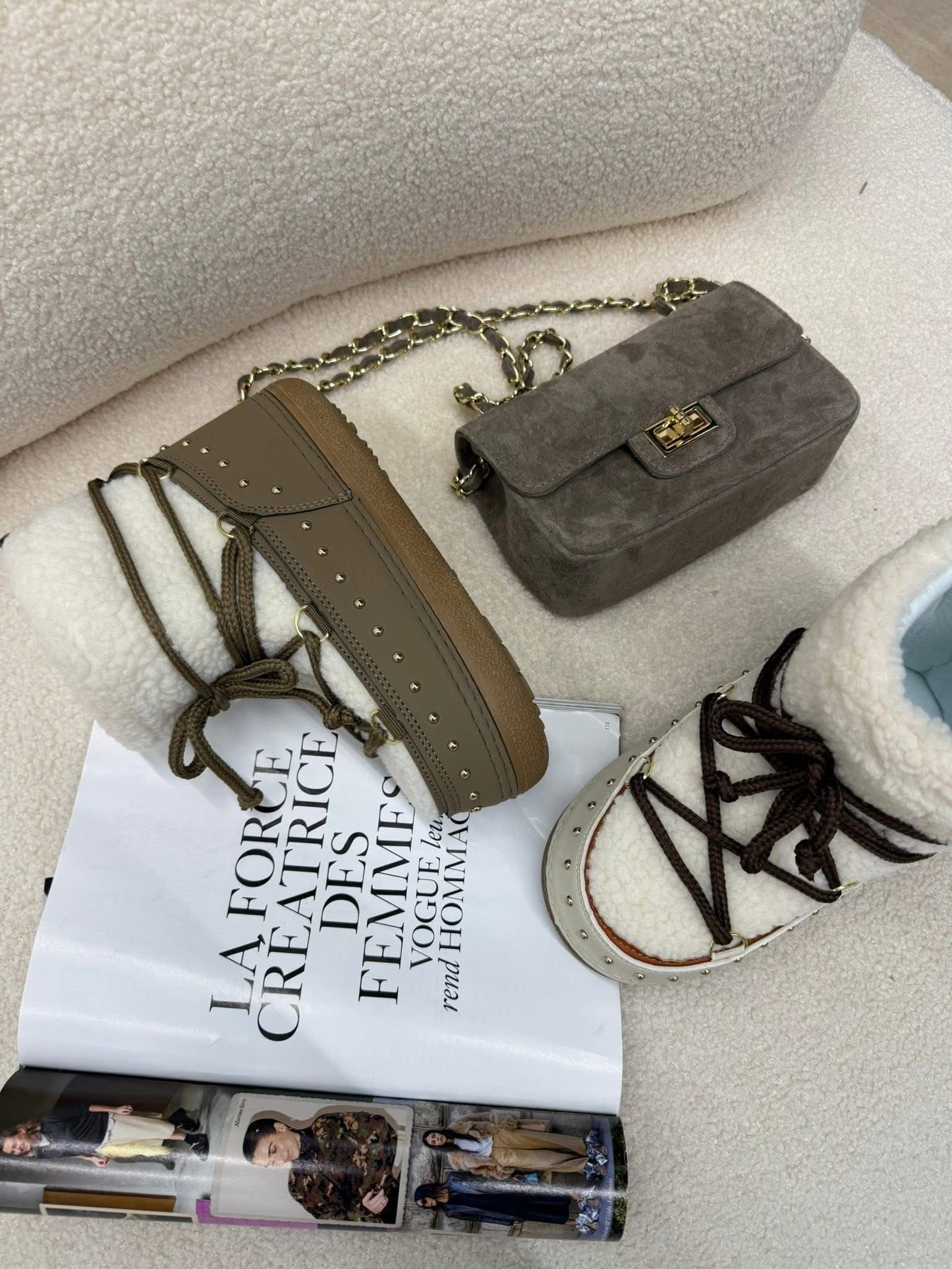 Śniegowce Kożuszek PREMIUM – ecru- ciemna czekolada
