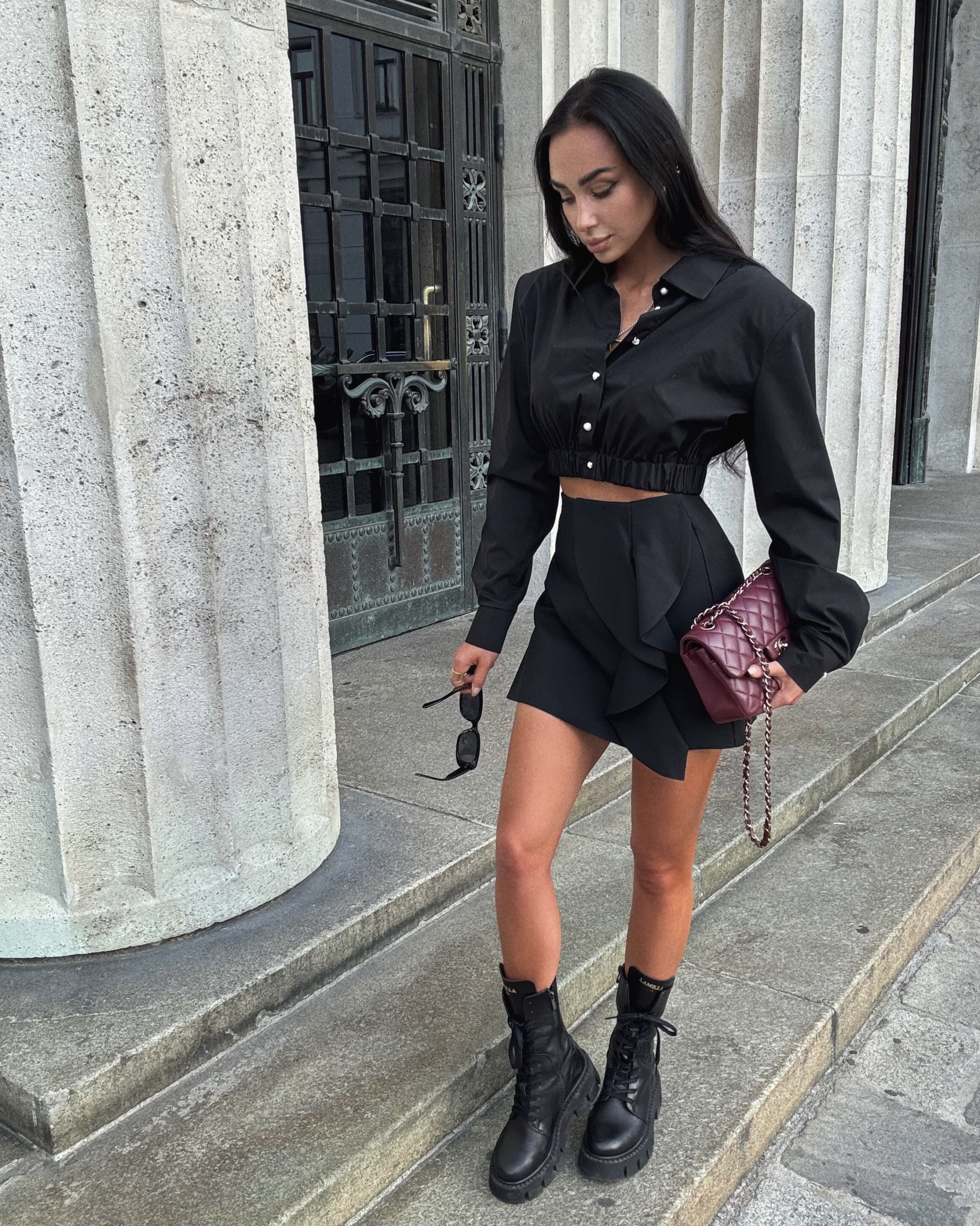 Asymetryczna falbanka dodaje całości lekkości i dziewczęcego uroku, a wysoki stan pięknie podkreśla talię, optycznie wydłużając nogi. To propozycja, która doskonale odnajdzie się zarówno w eleganckich stylizacjach, jak i w bardziej codziennych zestawach – wystarczy dobrać koszulę, top lub sweter oversize.