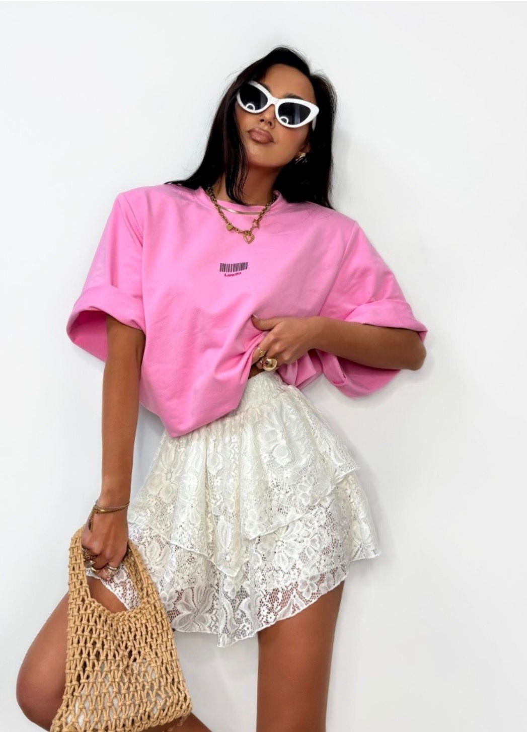 Te spódnico-spodenki to Model, który łączy w sobie subtelność koronki z komfortem noszenia spodenek. Z zewnątrz efekt lekko rozkloszowanej spódnicy, wewnątrz wygodne szorty – dzięki temu możesz czuć się swobodnie, a jednocześnie niezwykle kobieco. Delikatna, warstwowa koronka nadaje stylizacji romantycznego charakteru, a elastyczna talia pięknie dopasowuje się do sylwetki.