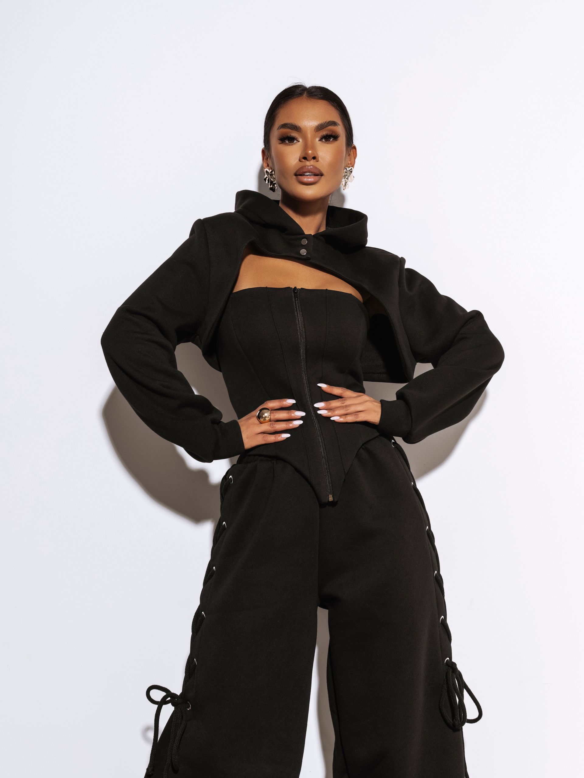 MARYNARKA Z WIĄZANIEM PO BOKACH GRUBSZA FAKTURA PREMIUM LA MILLA promo- CZARNY
