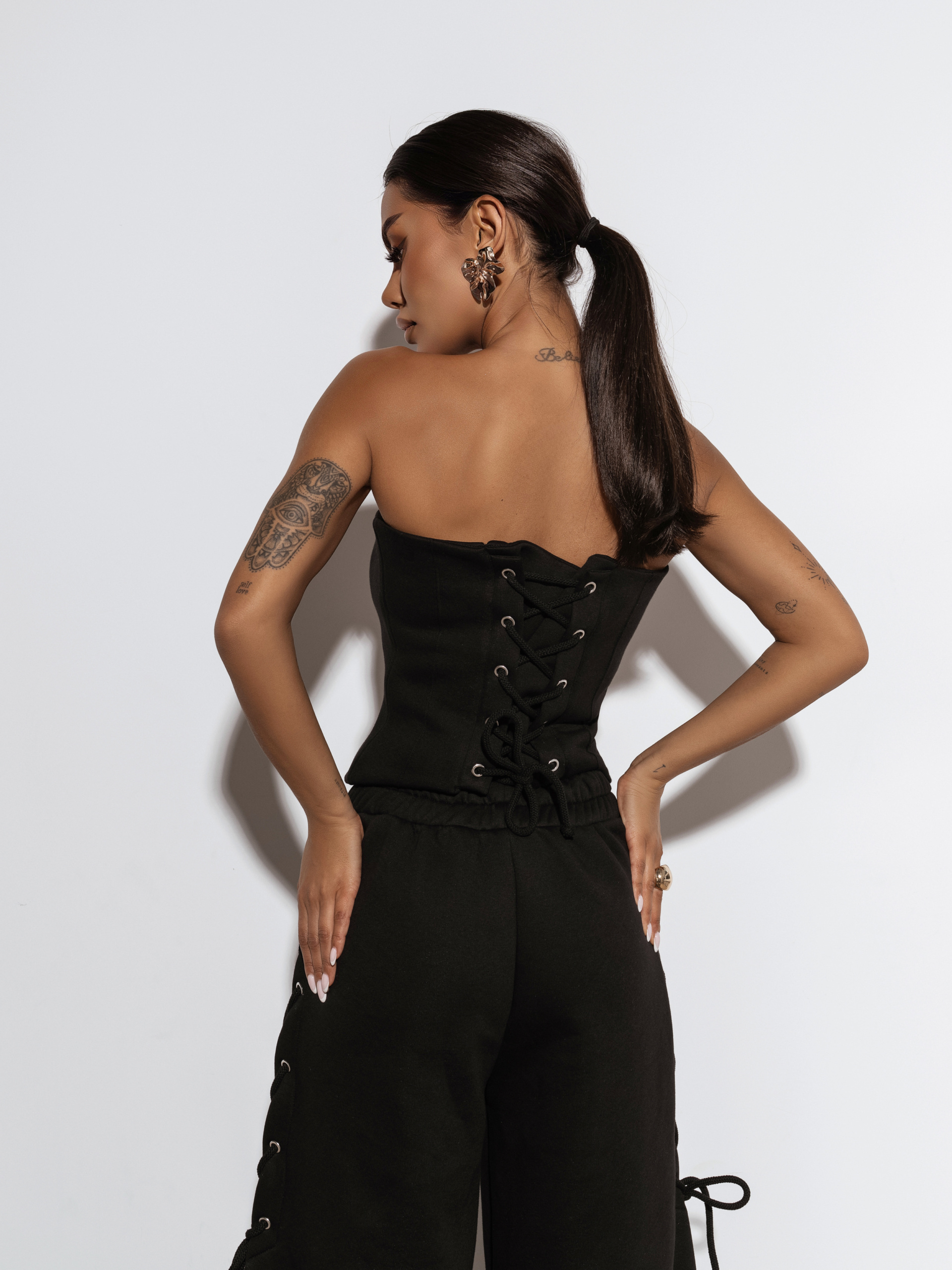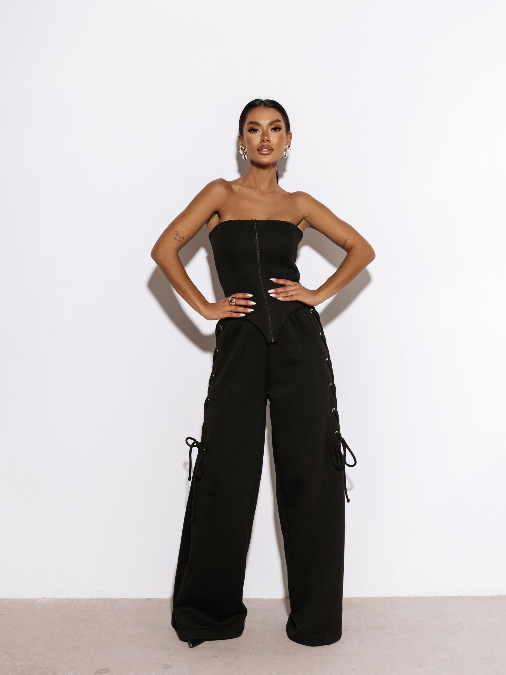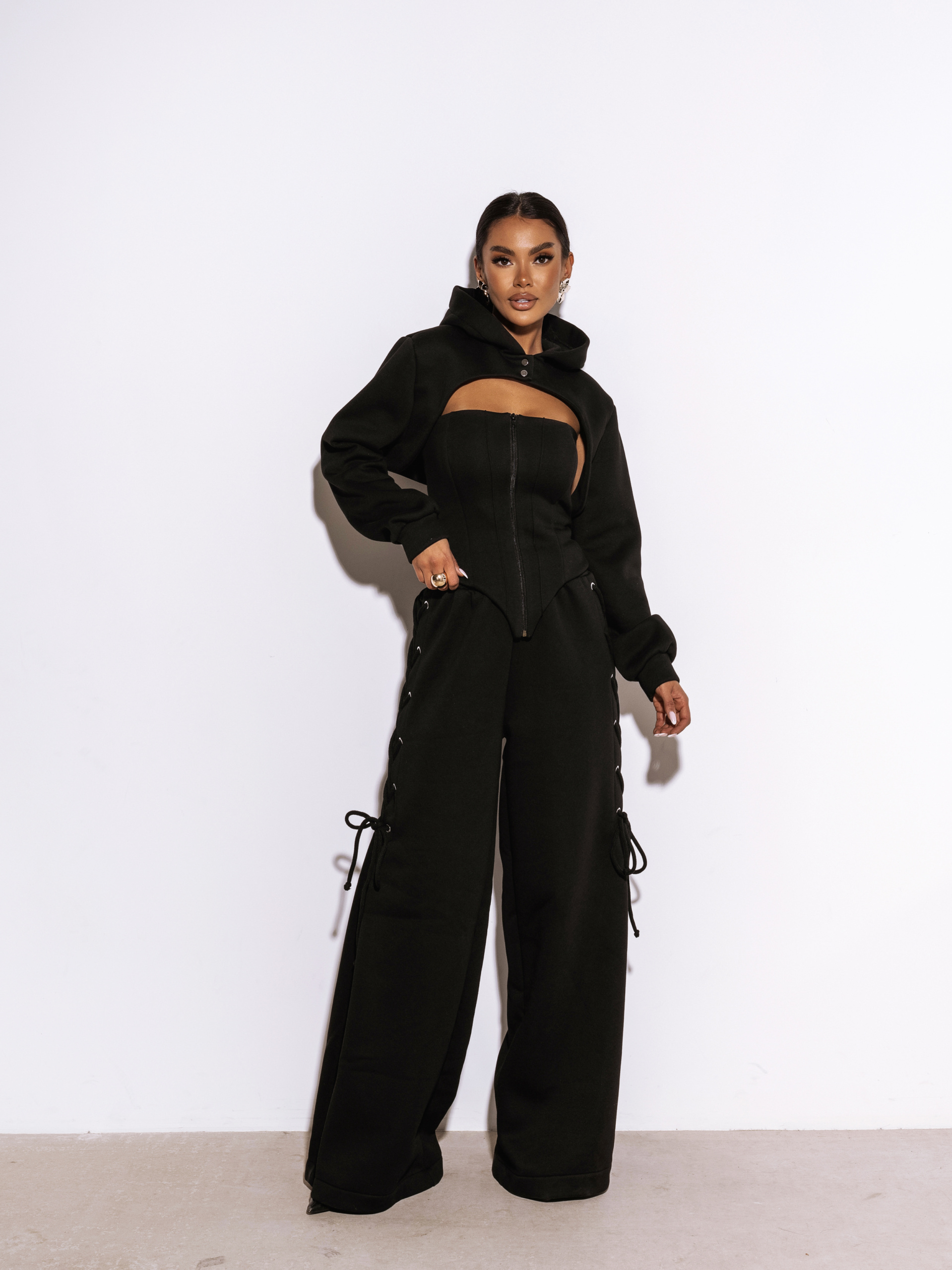 Strona główna WYPRZEDAŻ „-20%” Spodnie dresowe z wiązaniem po bokach La Milla promo – czarne