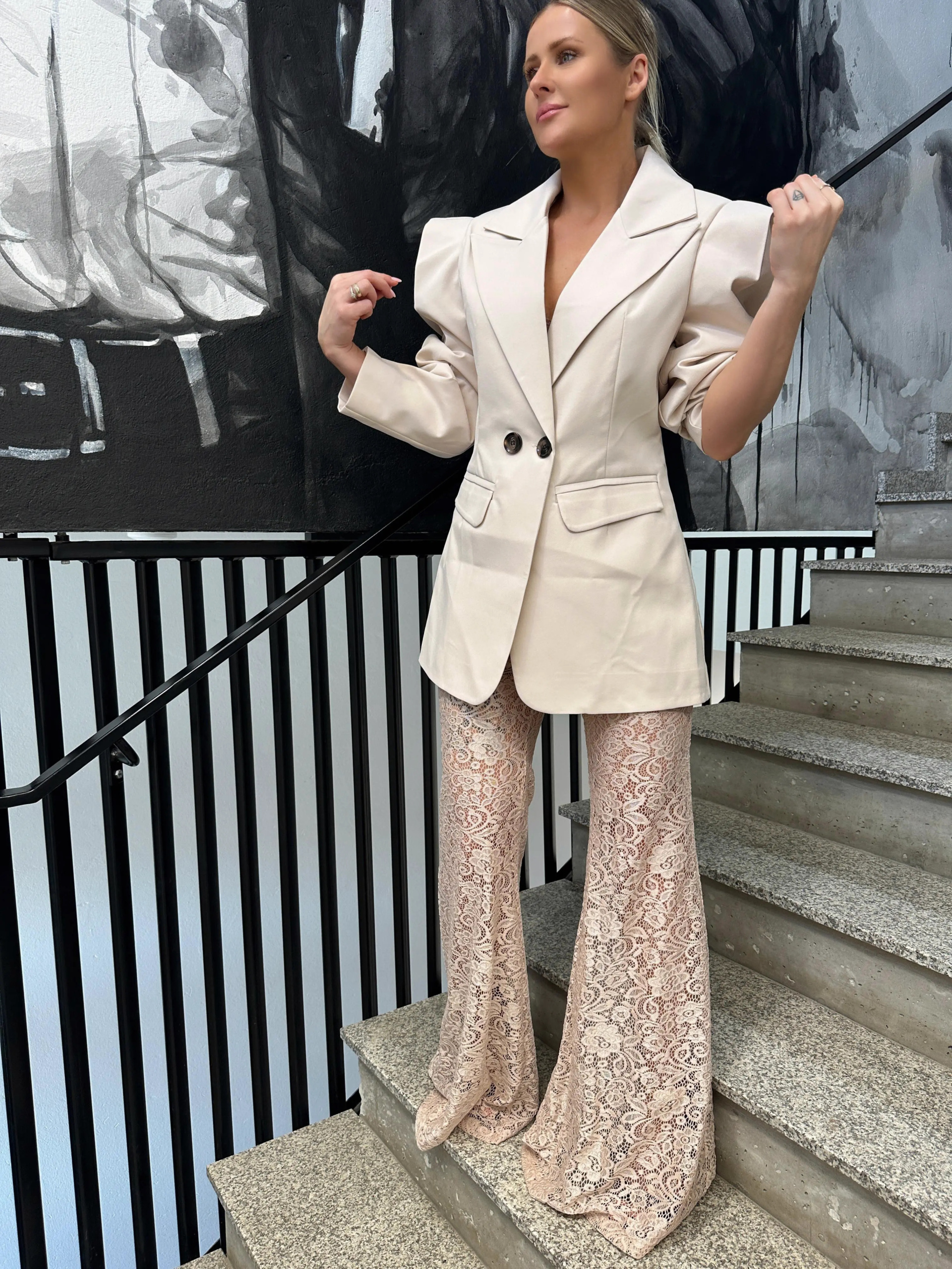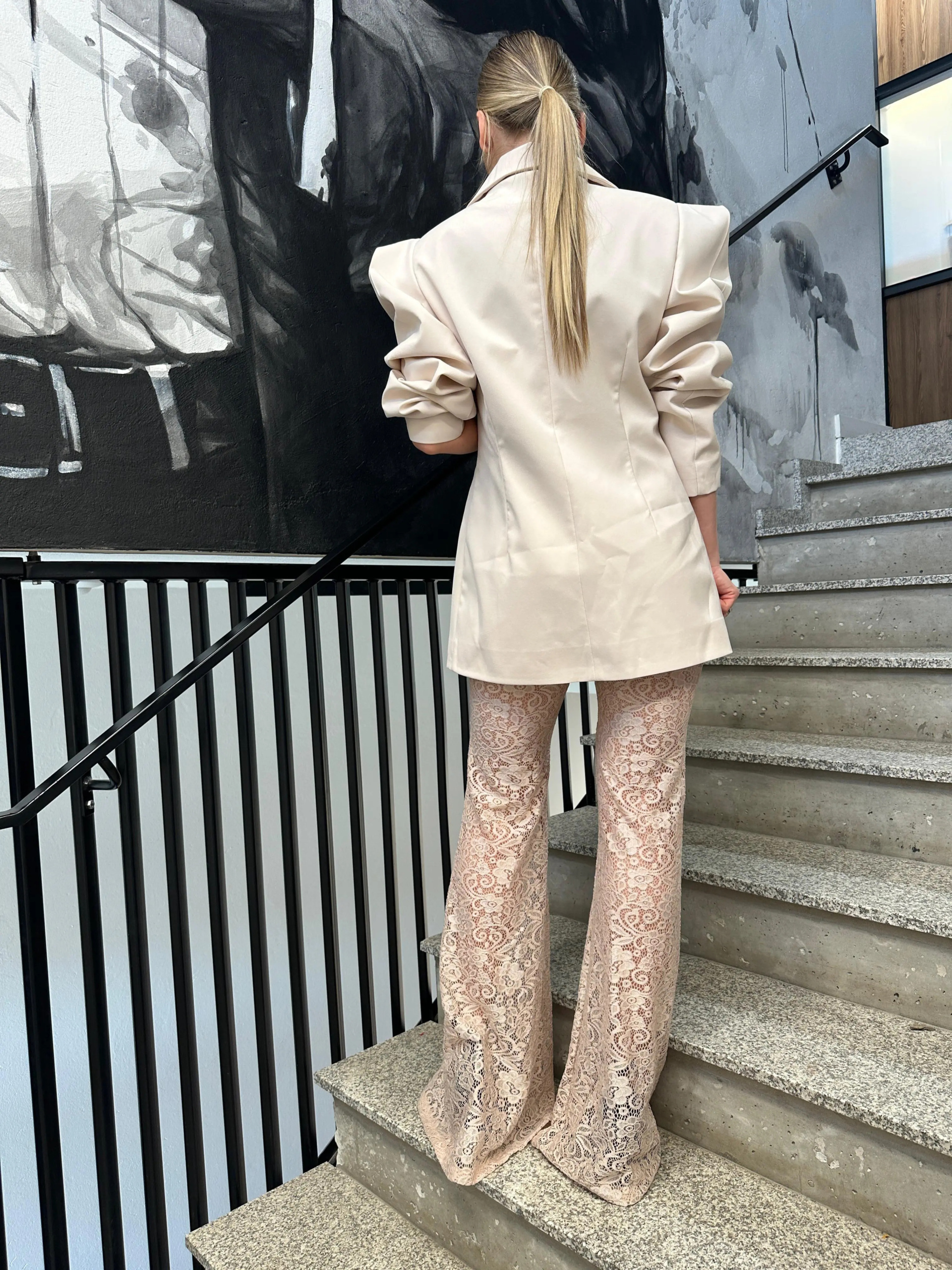 Wyjątkowo kobiece spodnie dzwony koronkowe od La Milla to model, który przyciąga uwagę i pięknie podkreśla sylwetkę. Delikatna koronka nadaje stylizacji elegancji i lekkości, a rozszerzana nogawka w stylu flare (dzwony) optycznie wydłuża nogi i nadaje całości bardzo modnego charakteru.