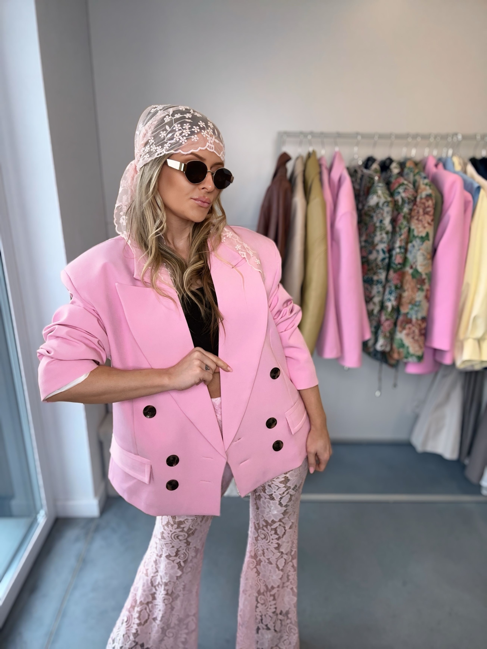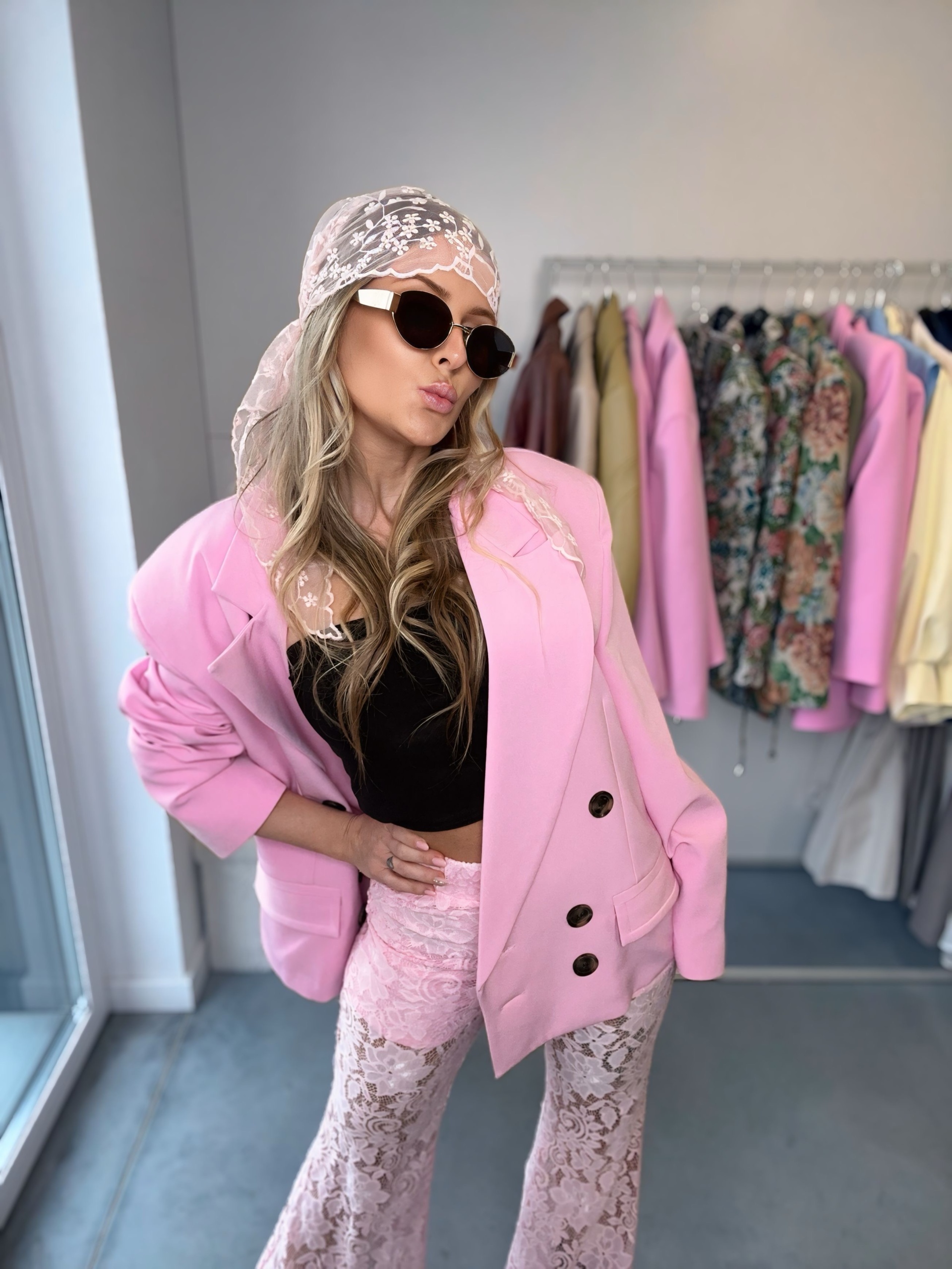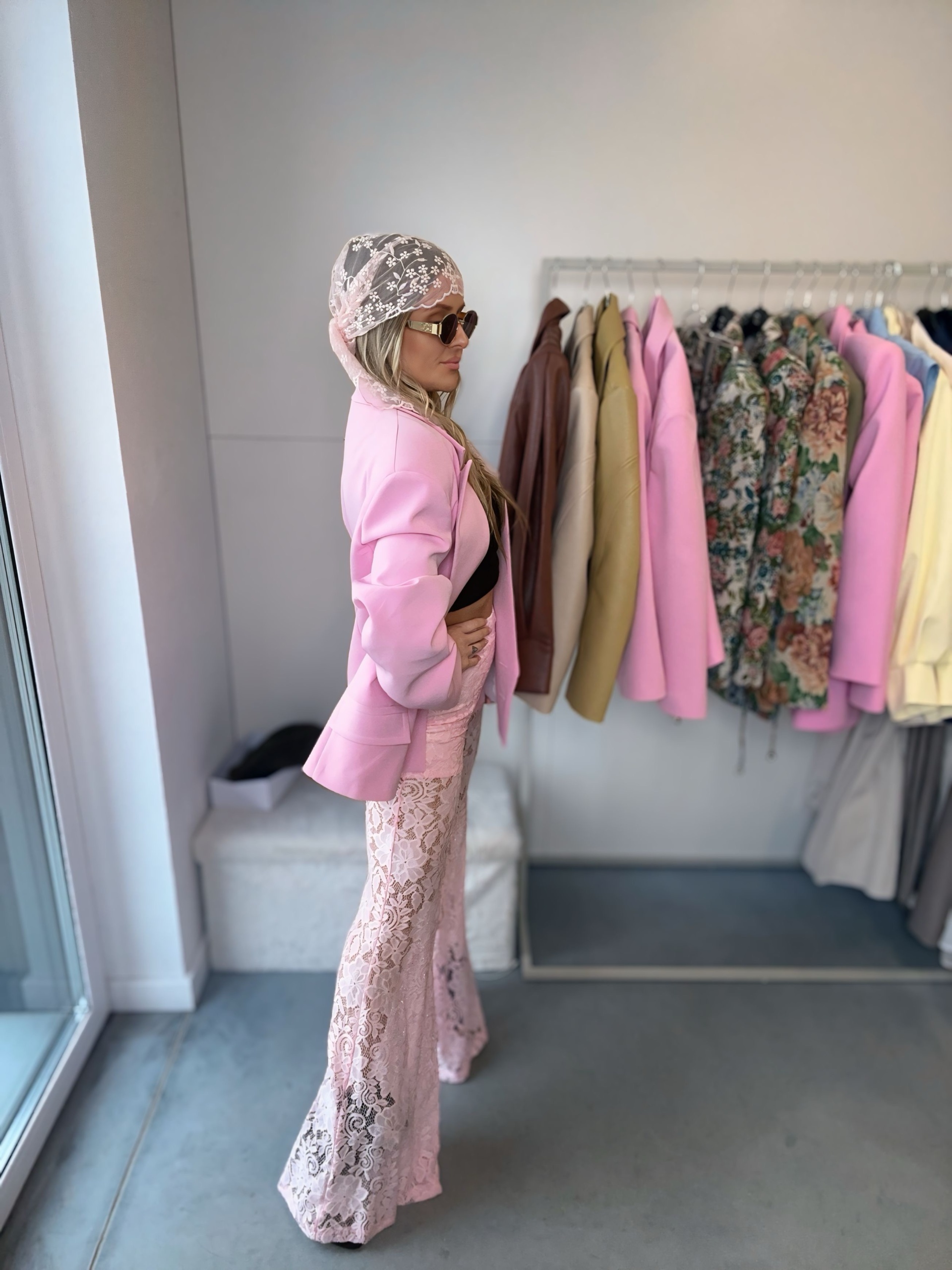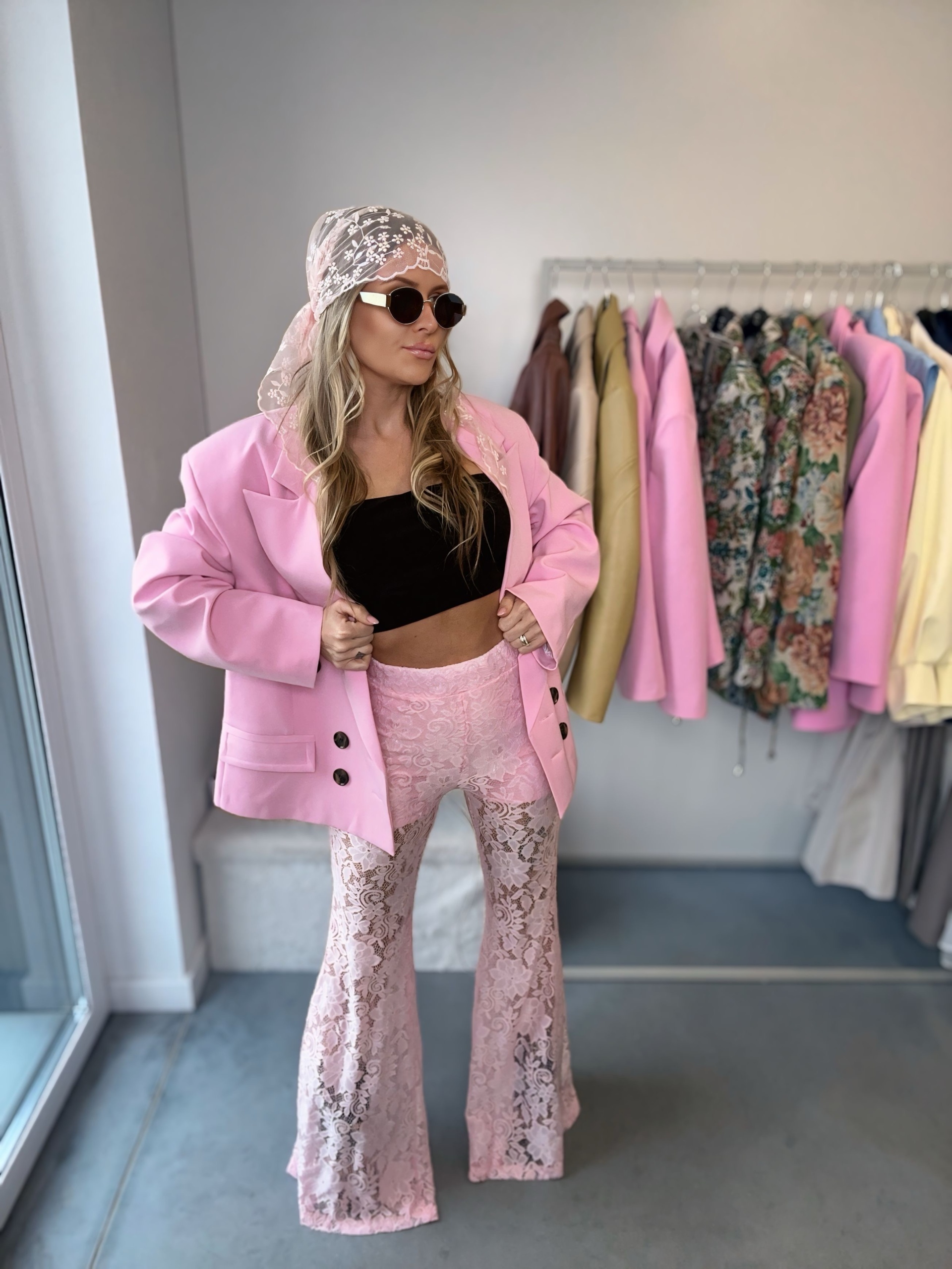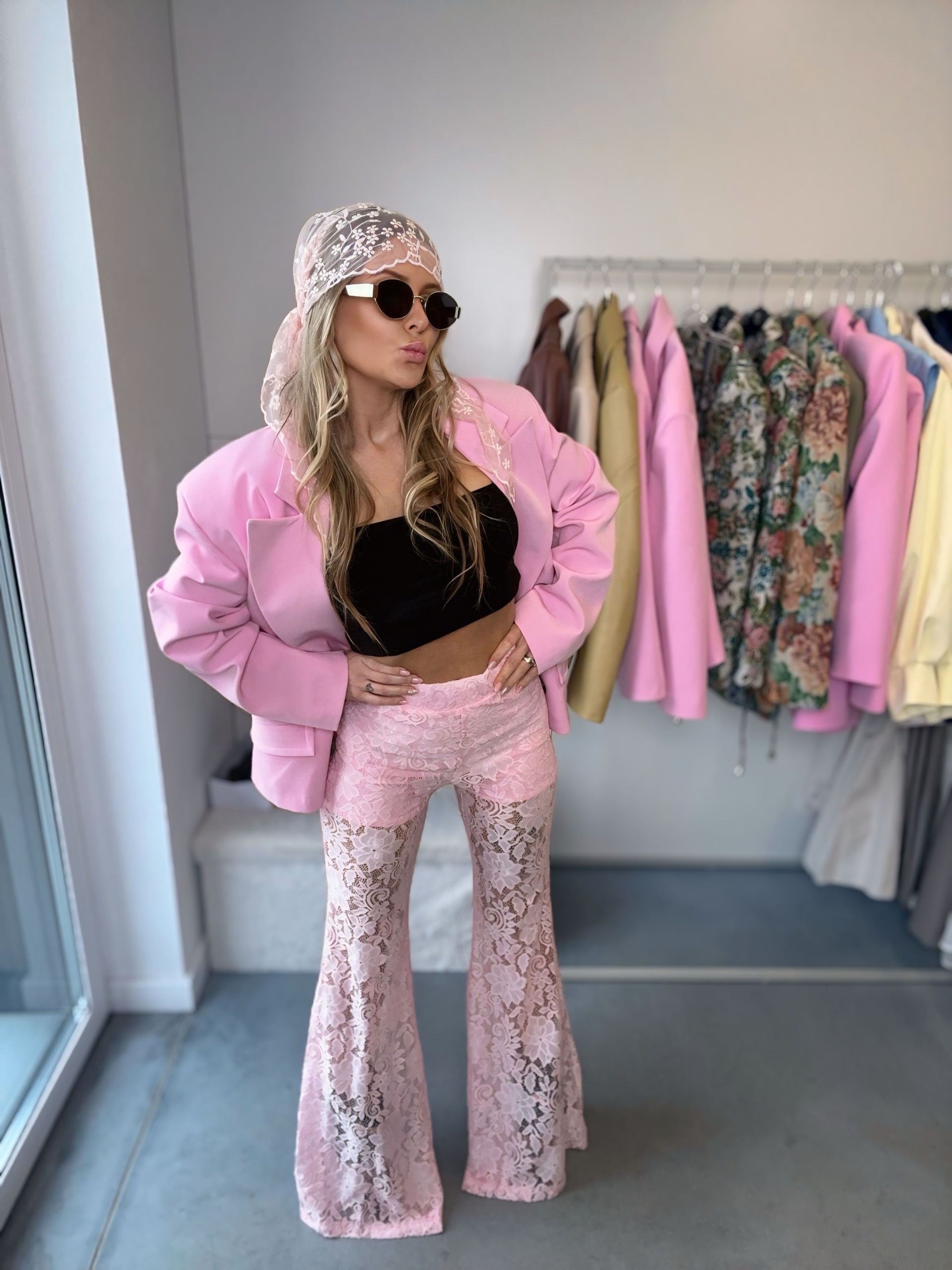 Spodnie dzwony koronkowe | La Milla | różowe