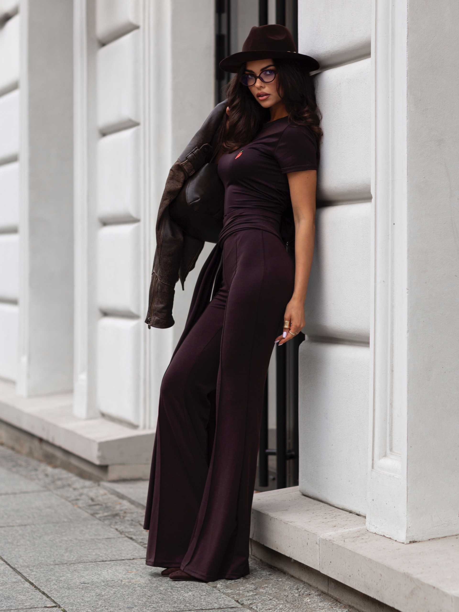 Spodnie dzwony z długą szarfą LONG La Milla – czekoladowe