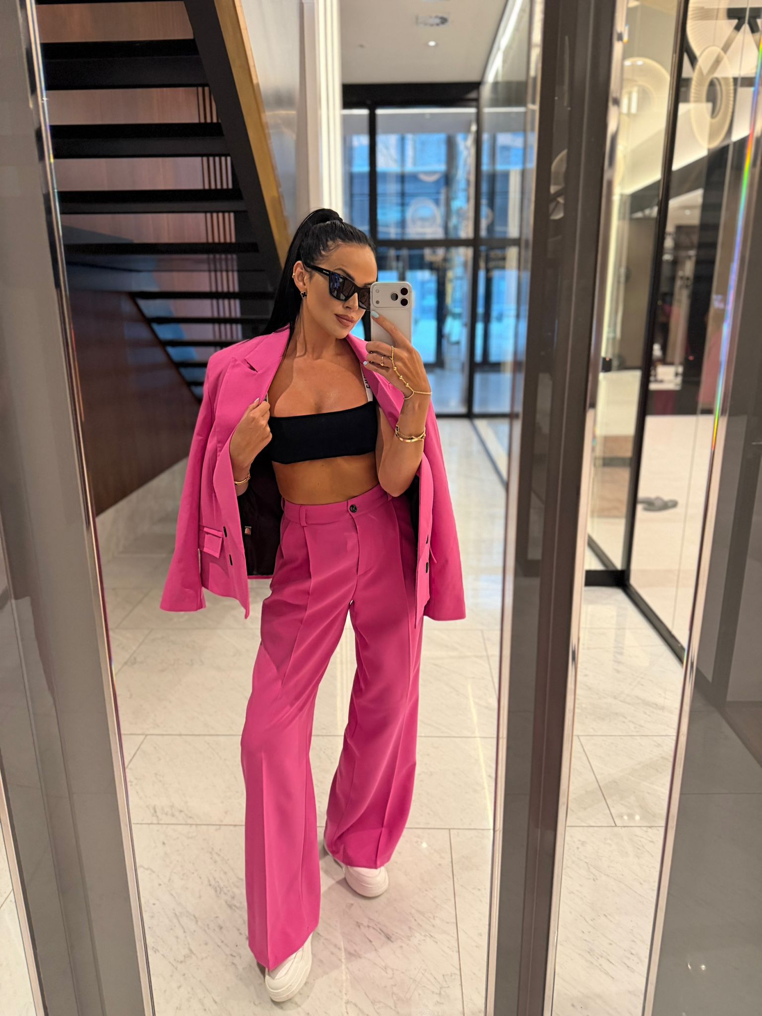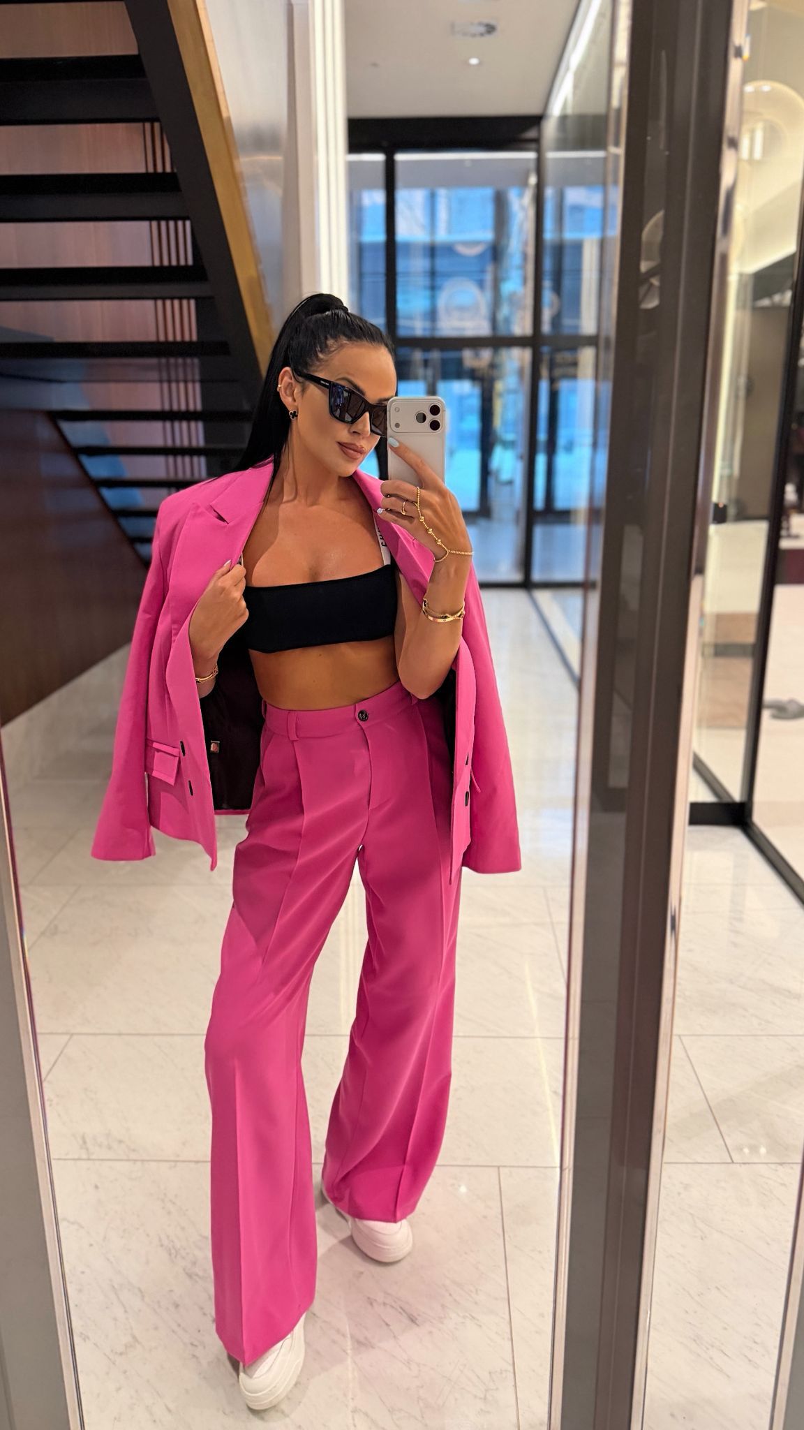 Spodnie garniturowe różowe La Milla to połączenie elegancji, kobiecego koloru i perfekcyjnego kroju. Klasyczny fason z prostą, lekko wydłużoną nogawką pięknie wysmukla sylwetkę i dodaje stylizacji nowoczesnego charakteru. Wysoki stan podkreśla talię i zapewnia komfort noszenia przez cały dzień. Spodnie doskonale sprawdzą się zarówno w eleganckich stylizacjach garniturowych, jak i w bardziej casualowych zestawach z koszulą lub topem. Wysokogatunkowa, elastyczna tkanina gwarantuje wygodę oraz idealne dopasowanie do sylwetki. Model świetnie prezentuje się solo lub w komplecie z marynarką.