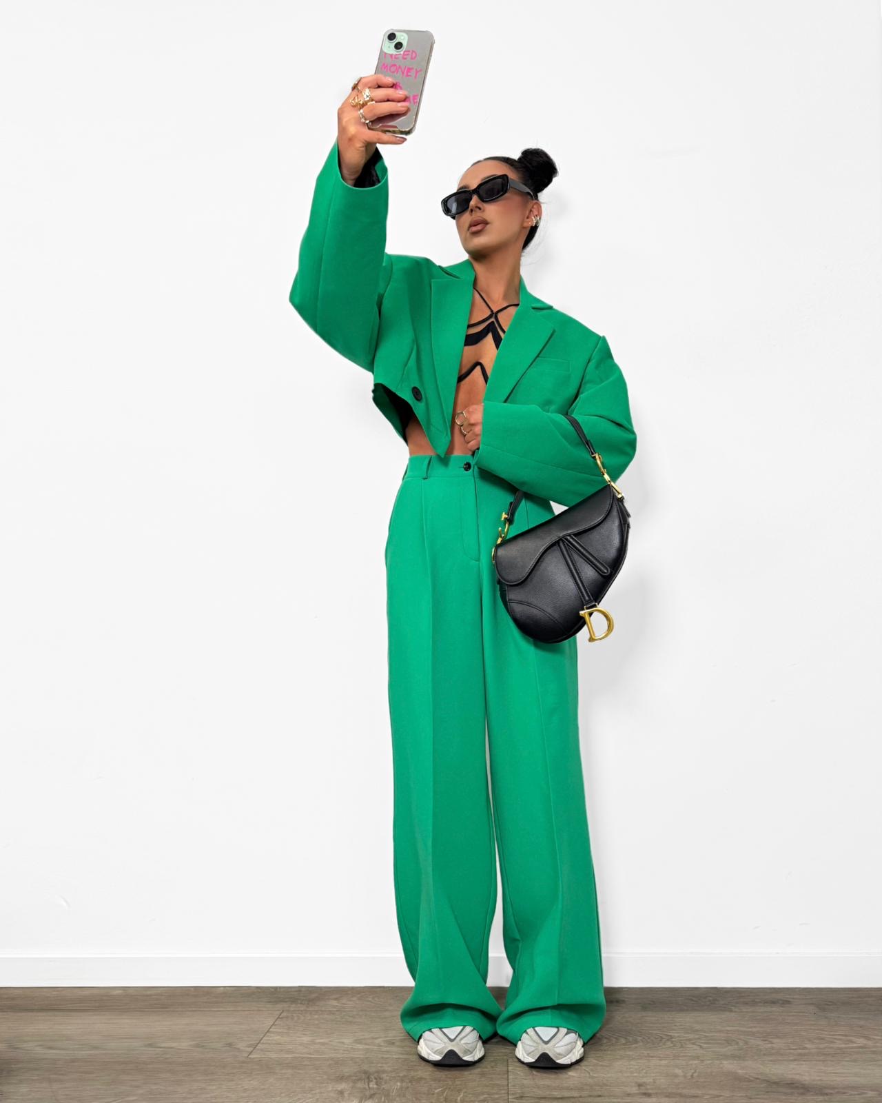 Spodnie garniturowe z zakładką | La Milla | zielone