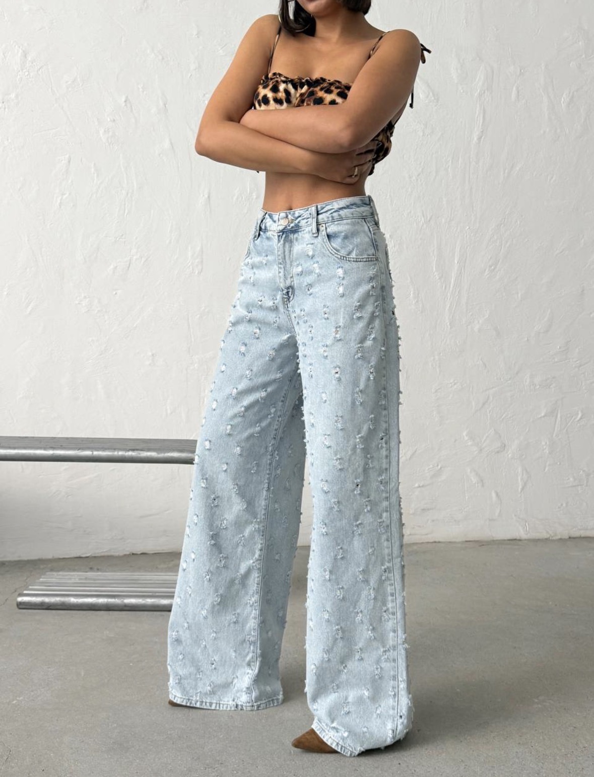 Strona główna Odzież damska Spodnie Spodnie jeansowe damskie szerokie nogawki | Ice Baddie Denim | jasny jeans