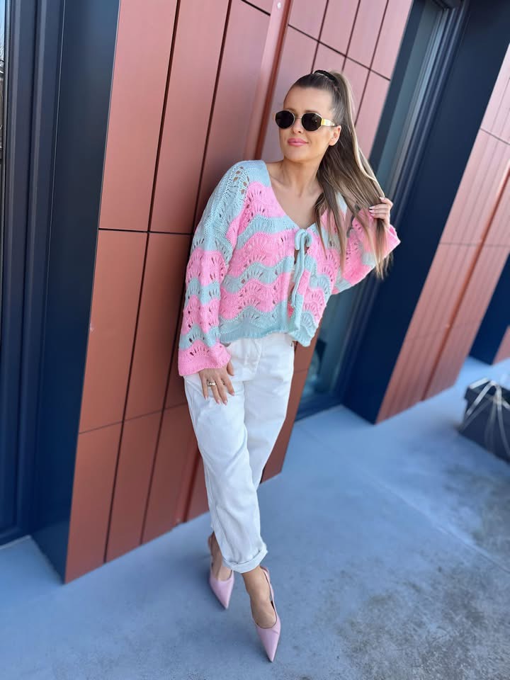 Strona główna Odzież damska Swetry Sweterki Sweter ażurowy | Klara | różowo-turkusowy