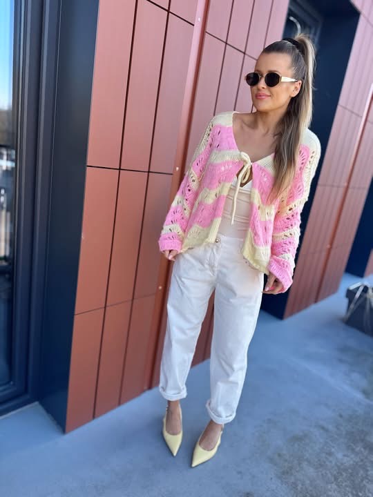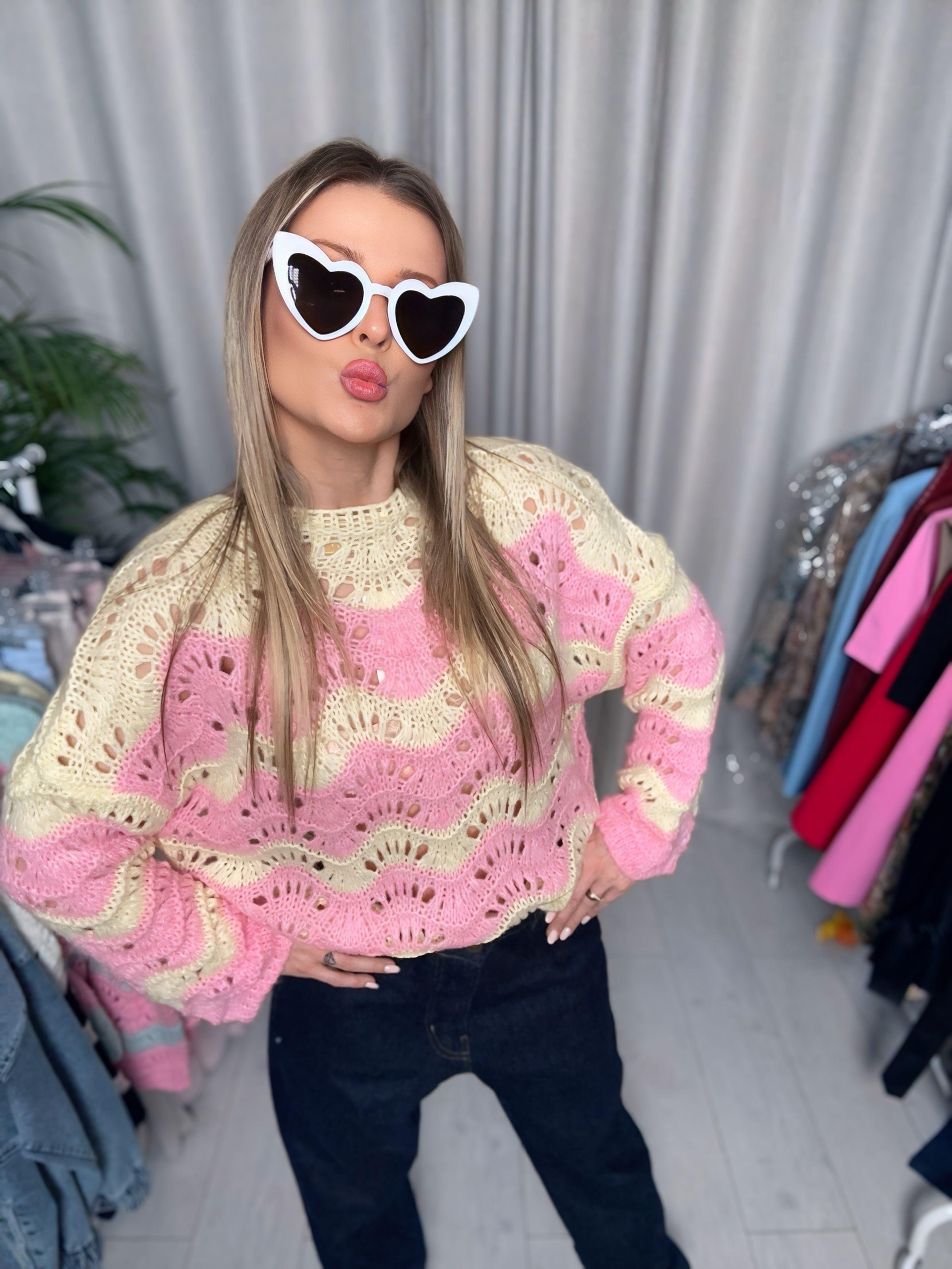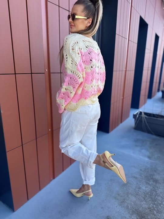 Strona główna Odzież damska Swetry Sweterki Sweter ażurowy | Klara | żółto-różowy