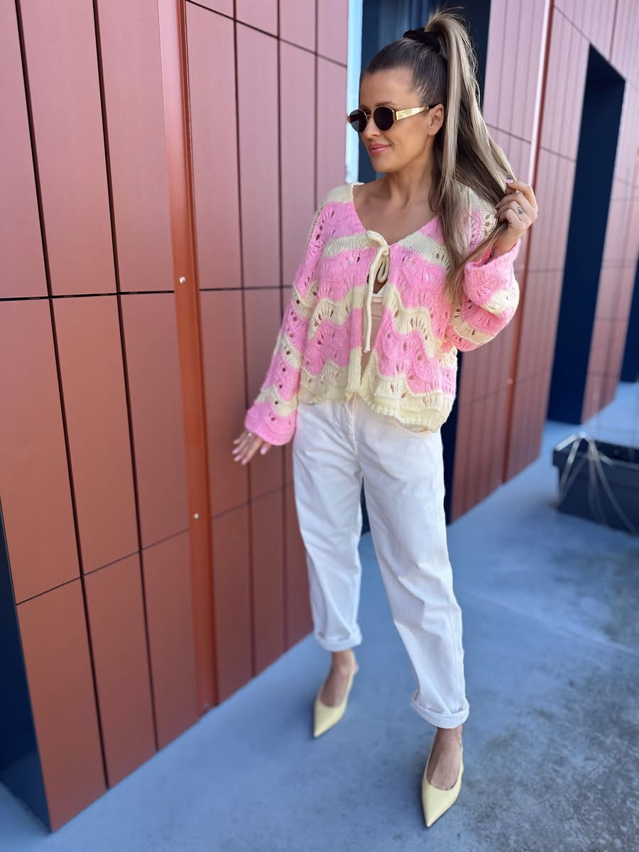 Sweter ażurowy | Klara | żółto-różowy