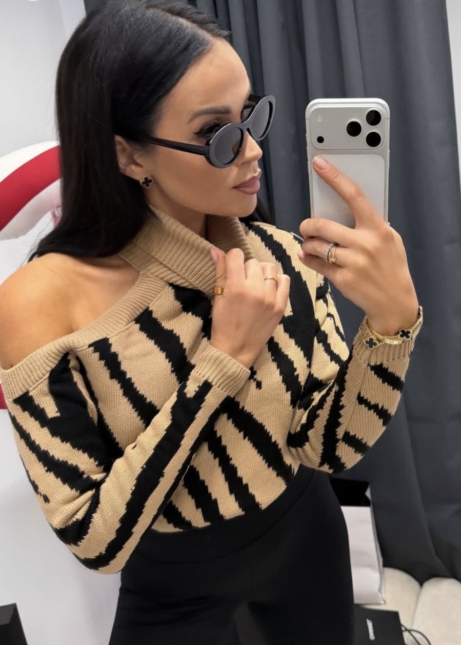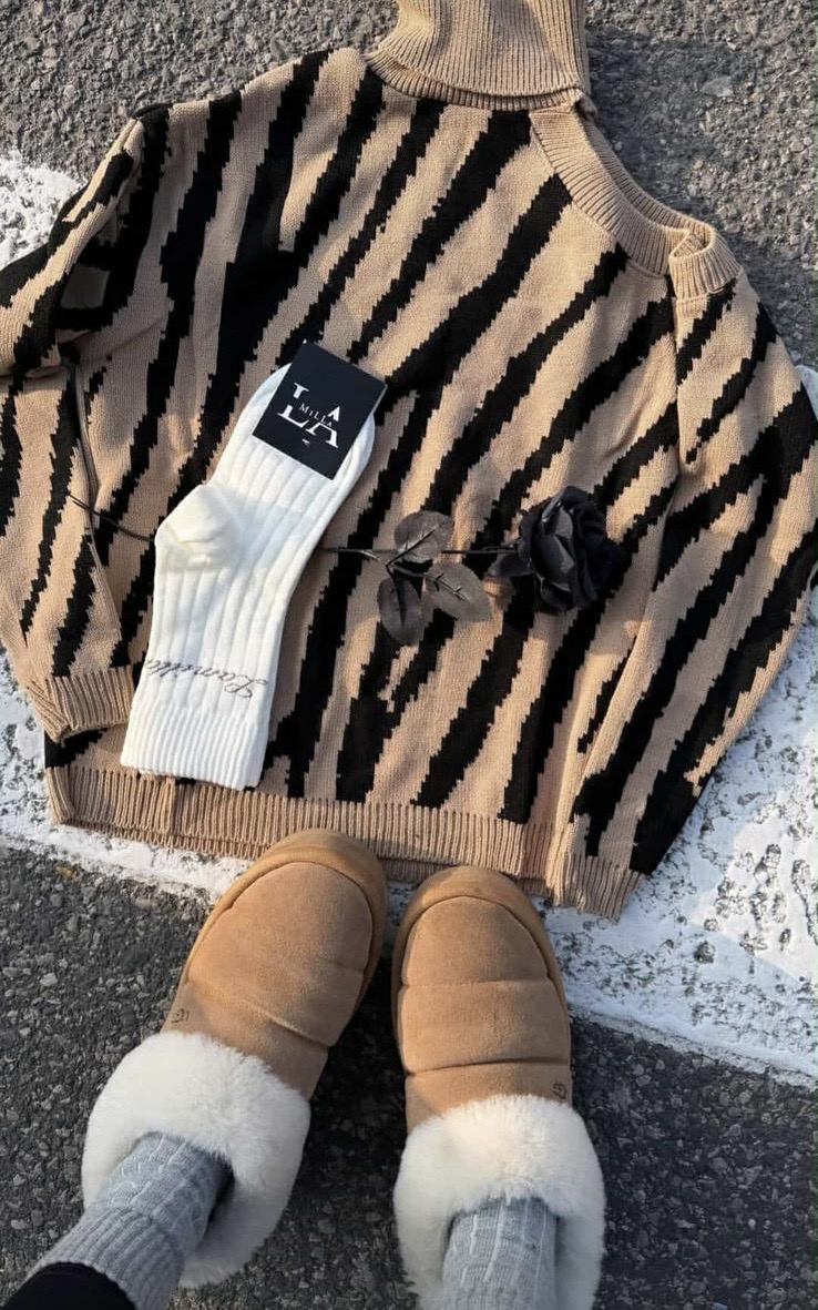 Komplet sweterkowy golf i legginsy La Milla – jasny beż