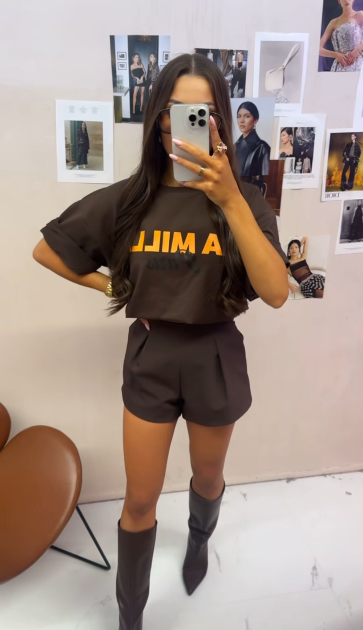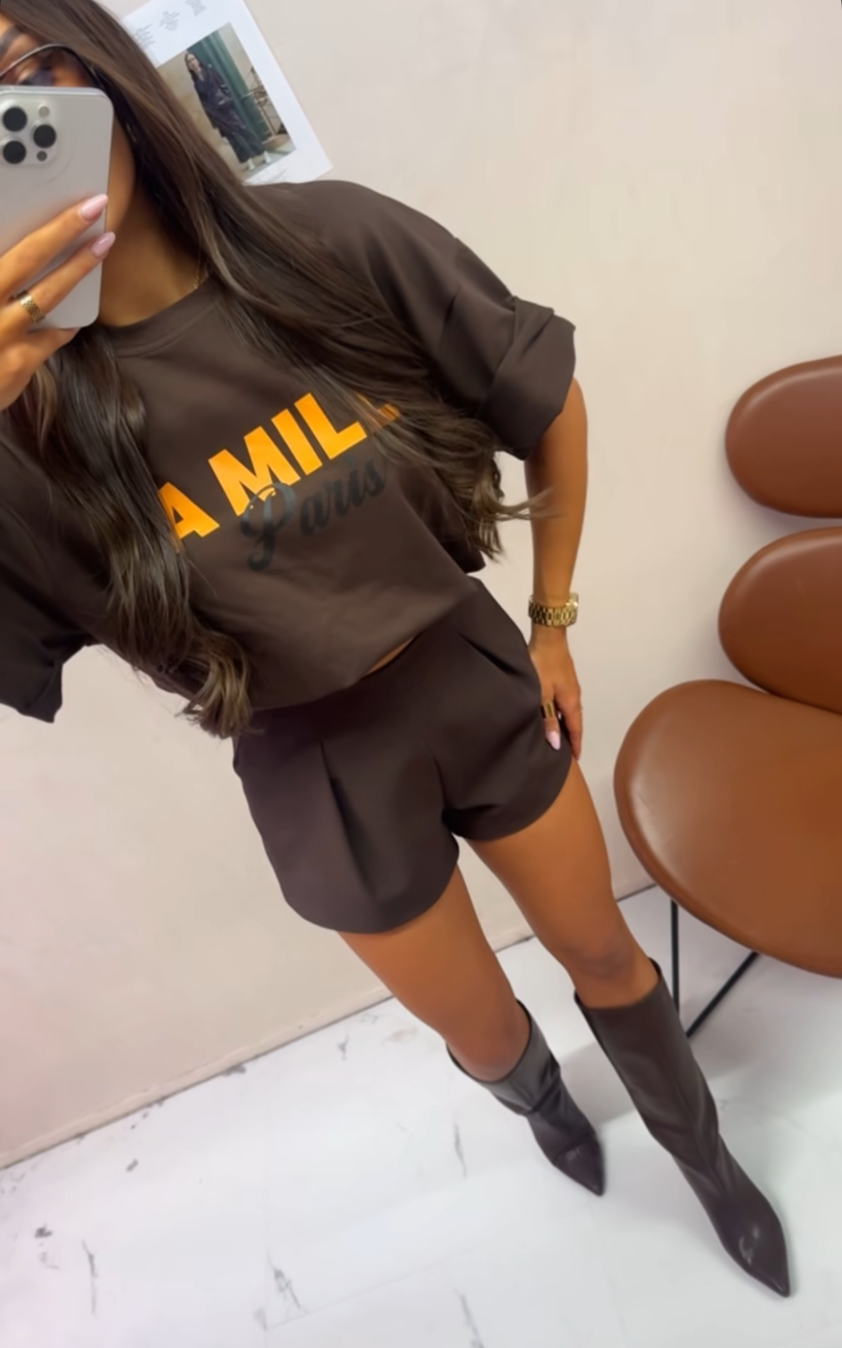 T-shirt PARIS pomarańczowy La Milla- czekoladowy